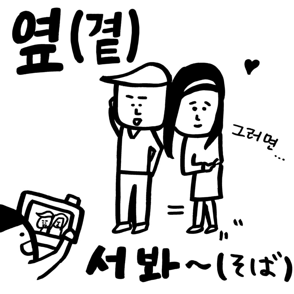 *そば는 한국어로 '옆'이나 '곁'이라는 뜻이에요.